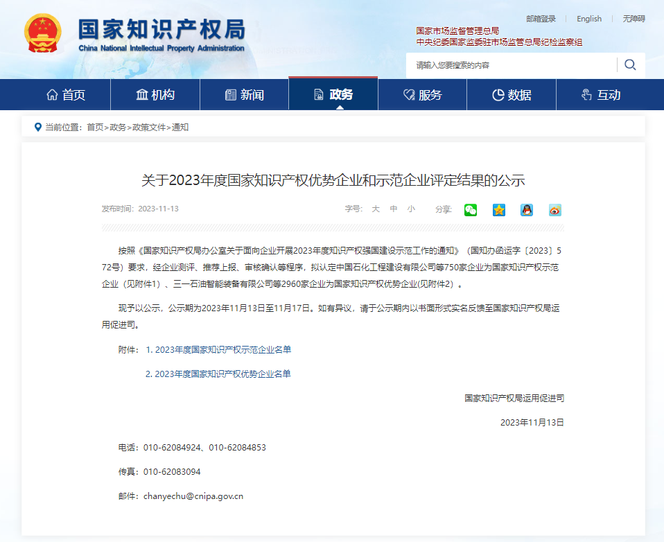 11月13日,國家知識產(chǎn)權(quán)局公示了關(guān)于2023年度國家知識產(chǎn)權(quán)優(yōu)勢企業(yè)和示范企業(yè)評定結(jié)果,河南源宏高分子新材料有限公司憑借在知識產(chǎn)權(quán)創(chuàng)造、運(yùn)用、管理及保護(hù)等方面的多重優(yōu)勢成功入選“2023年度國家知識產(chǎn)權(quán)優(yōu)勢企業(yè)”。