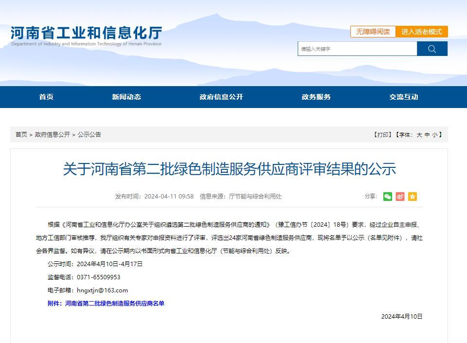 此次成功入選“河南省綠色制造服務供應商”,是對公司在綠色制造服務業(yè)績和能力上的支持與認可。下一步,公司將結(jié)合自身業(yè)務方向,積極服務行業(yè)綠色低碳循環(huán)發(fā)展,為全國工業(yè)企業(yè)節(jié)能降碳資源循環(huán)利用提供更多定制化解決方案,為做大做強河南省節(jié)能環(huán)保產(chǎn)業(yè)貢獻力量。