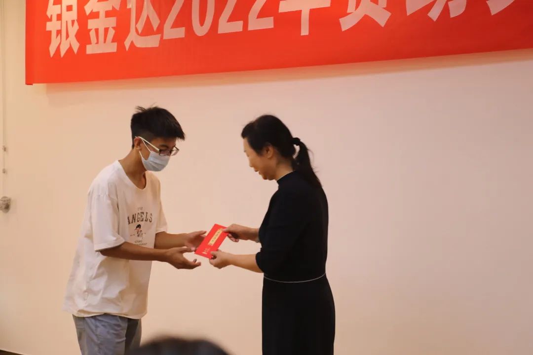 銀金達(dá)集團(tuán)黨委書(shū)記、董事長(zhǎng)閆銀鳳分別向受助的每一位學(xué)子發(fā)放助學(xué)金。貧困生代表王勇震發(fā)言說(shuō):“在我們?yōu)榧磳⒗U納學(xué)費(fèi)和生活費(fèi)擔(dān)憂的時(shí)候,銀金達(dá)作為一個(gè)有責(zé)任有擔(dān)當(dāng)?shù)钠髽I(yè),給予了我們資助,猶如雪中送炭,讓我們?cè)俅胃惺艿搅藖?lái)自愛(ài)心企業(yè)的溫暖。我相信有了這筆資助金,我們能以更加輕松的姿態(tài)走入大學(xué)的校門(mén)。當(dāng)然,作為新時(shí)代優(yōu)秀青年,我們也有信心有力量來(lái)闖出一片天地,無(wú)愧于學(xué)校的栽培,無(wú)愧于社會(huì)的支持,也無(wú)愧于銀金達(dá)的付出?!弊詈螅砣w受資助同學(xué)向銀金達(dá)表示誠(chéng)摯的謝意。