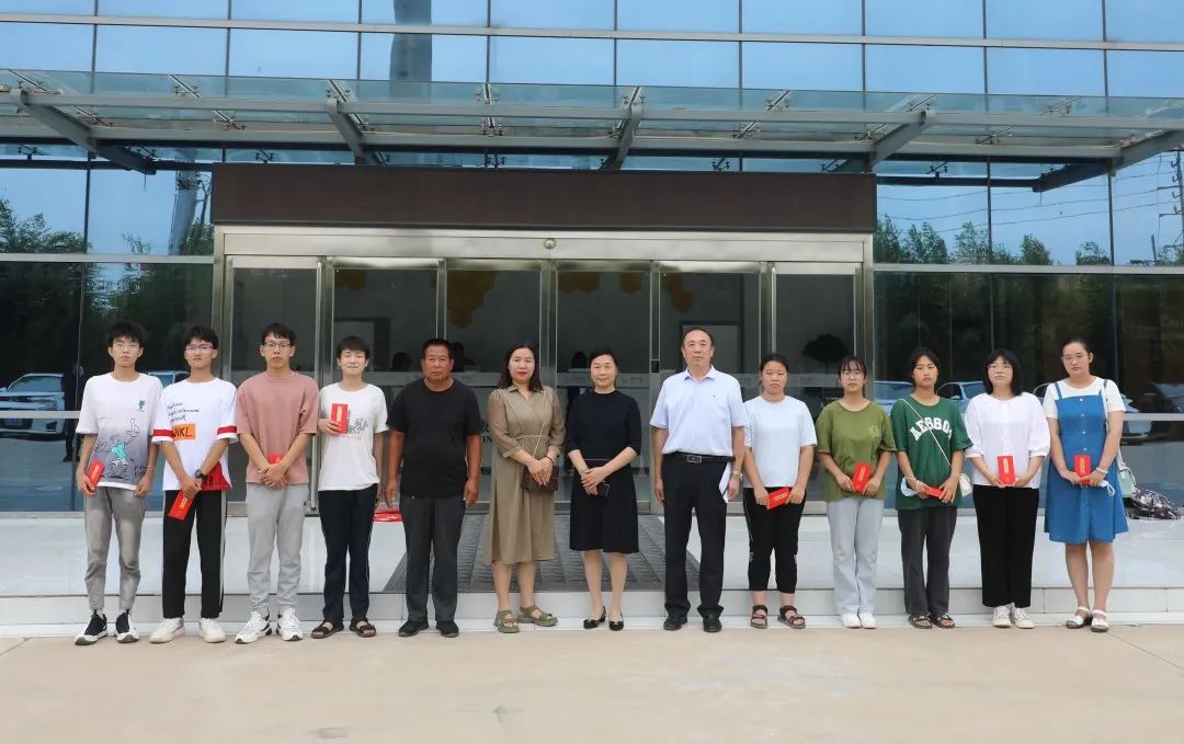 會(huì)議高唱《歌唱祖國(guó)》的歌聲中結(jié)束。閆董事長(zhǎng)與同學(xué)們一起合影留念,并與結(jié)對(duì)幫扶村王二莊村大學(xué)生合影留念。