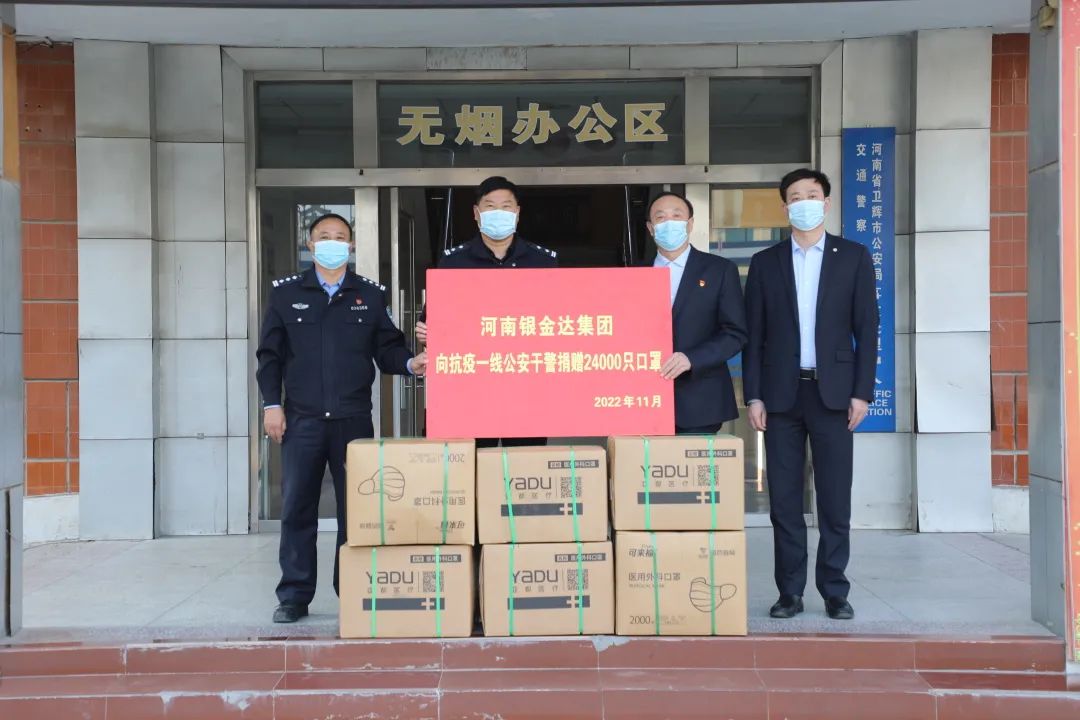 在當(dāng)前疫情嚴(yán)峻復(fù)雜的形勢下,公安干警不懼風(fēng)險英勇戰(zhàn)斗在疫防一線,為守護(hù)一方平安和抗擊疫情作出了重要貢獻(xiàn)。銀金達(dá)集團(tuán)黨委書記、董事長閆銀鳳為助力公安干警抗擊疫情,委托集團(tuán)黨委副書記、工會主席楊鳳瑞和彩印公司副總經(jīng)理劉廣斌到衛(wèi)輝市公安局、衛(wèi)輝市交警大隊慰問,并捐獻(xiàn)防疫口罩2.4萬只,表達(dá)銀金達(dá)干部職工的熱誠問候。